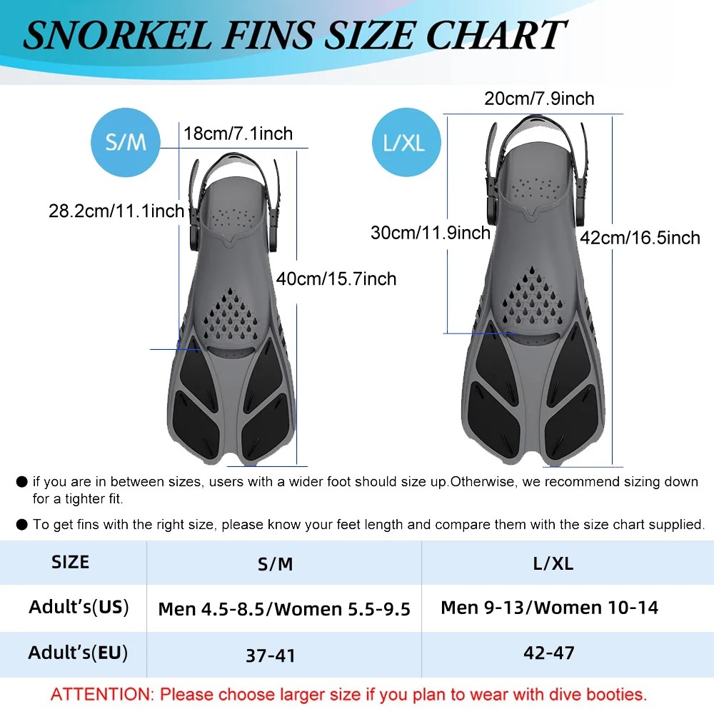 - 【PERFECT SWIM PARTNER】The Snorkel Fins with scientific design, minimize fatigue and prevent cramps, it uses the unique open toe and cool flame shaped mesh instep design, it will help to reduce resistance and you will feel more comfortable and breathable. It’s can be used with water shoes and water socks (Reminder: Please purchase sizes up if wear with dive booties together)